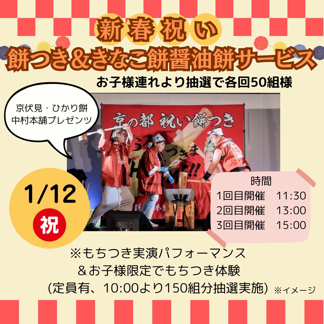 新春祝い餅つき&きなこ餅醤油餅サービス
