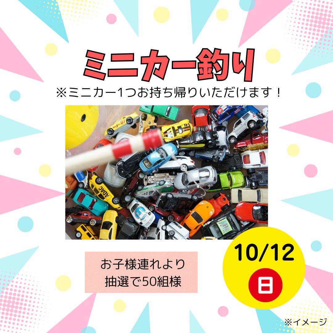 お子様連れのご家族より抽選で50組様にミニカー釣りにご参加いただけます。
