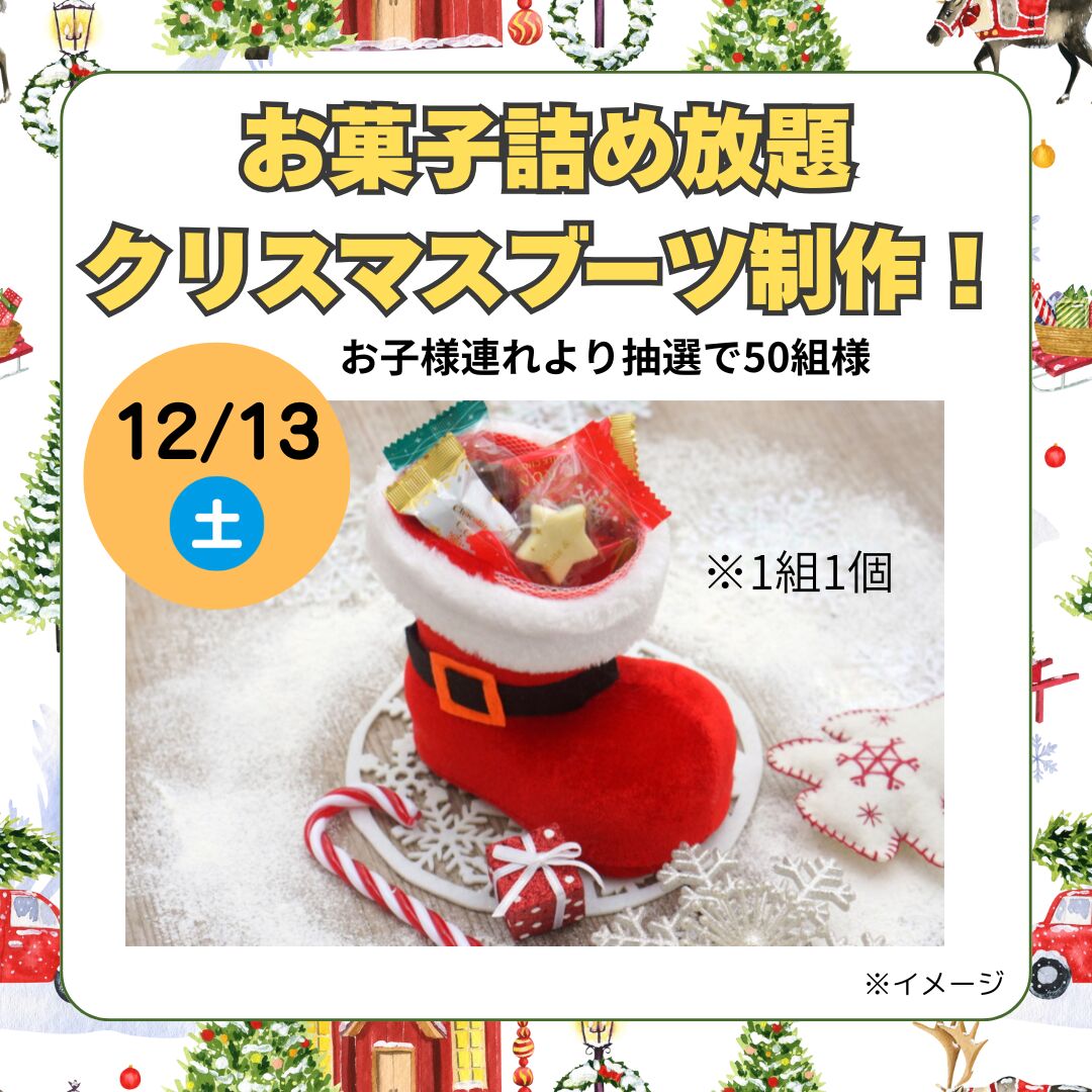 お子様連れのご家族より抽選で50組様にお菓子を詰め放題&自分だけのクリスマスブーツ製作体験に参加していただきます。