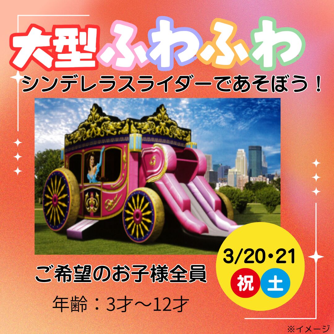 ご希望のお子様全員に大型ふわふわシンデレラスライダーで遊んでいただきます。