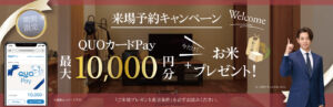 WEBからのご予約で、今だけクオカード最大10,000円分+お米プレゼント!